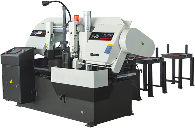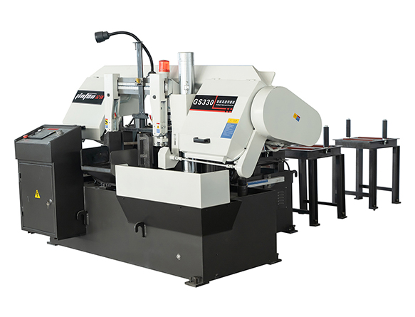 其次,臥式帶鋸床是水平送料,數(shù)控臥式帶鋸床通常搭配料架使用。操作人員只需將工件放置到料架上,即可實現(xiàn)自動進(jìn)給。極大降低了工人的勞動強度。