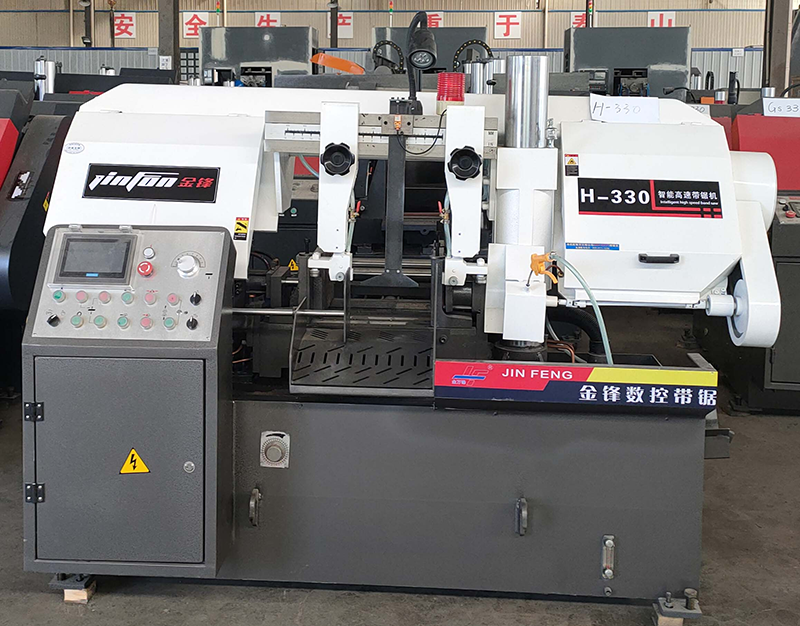 在智能化方面,和其他生產(chǎn)公司相比,金鋒鋸業(yè)的優(yōu)勢在于生產(chǎn)的專利產(chǎn)品——智能高速帶鋸床H350、H330,其采用的是41寬的鋸帶,鋸切動力更加強勁,真正能達(dá)到了高速的效果。