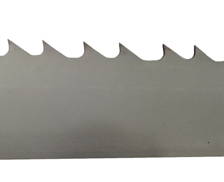 M51硬質(zhì)合金帶鋸條在研發(fā)之初,根據(jù)實(shí)際鋸切情況的不同,如材料的大小、材質(zhì)、形狀等,設(shè)計(jì)了帶鋸條具有不同的鋸齒大小,因此,在切削加工時(shí),若選擇的硬質(zhì)合金帶鋸條鋸齒過(guò)大,且齒數(shù)較少,則會(huì)使整個(gè)切削過(guò)程切割不穩(wěn)定,而又由于每一鋸齒的切割負(fù)荷增加,則容易使鋸齒拉齒、損壞帶鋸條。