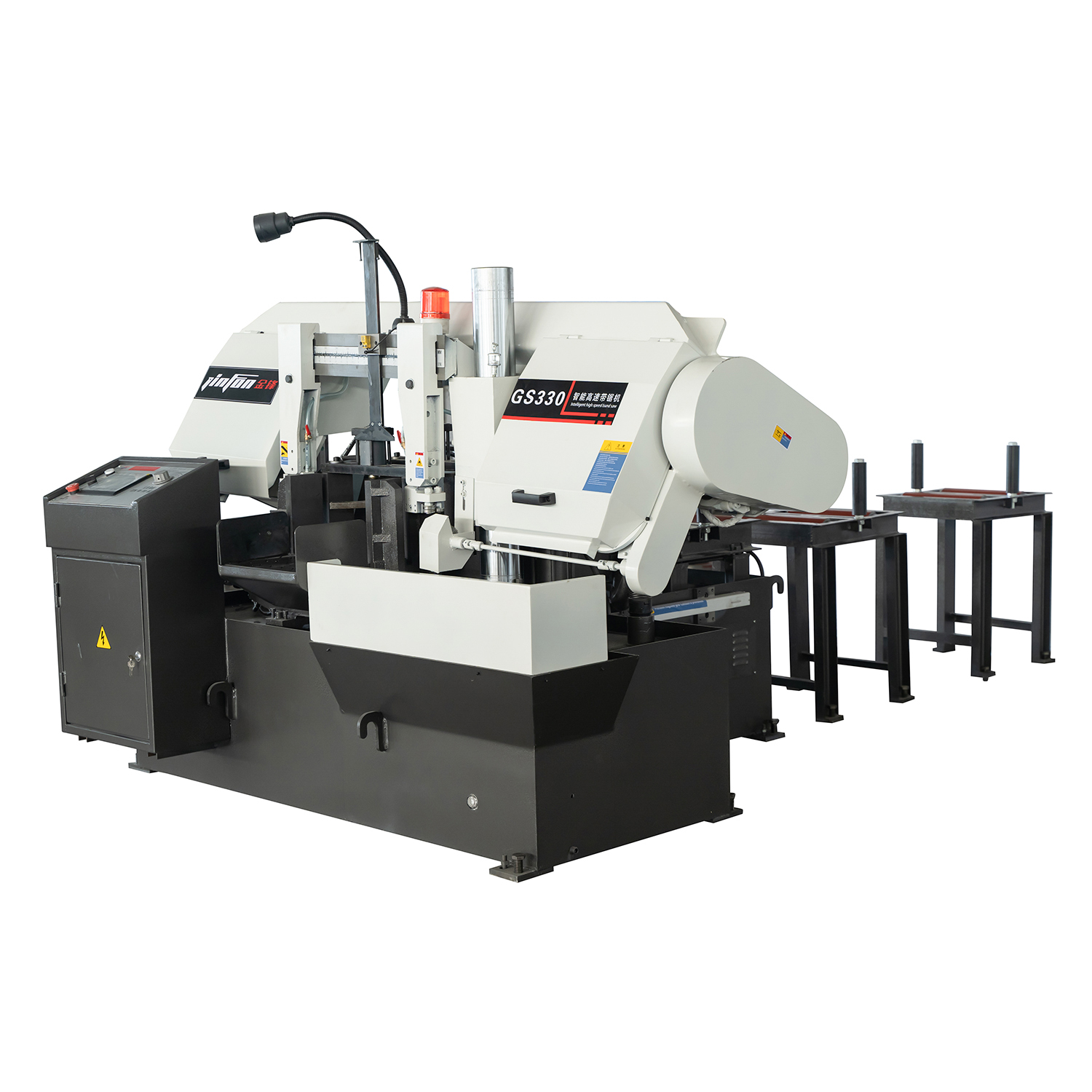 金鋒鋸業(yè)生產(chǎn)的GS330為臥式結(jié)構(gòu)、PLC控制、智能全自動數(shù)控系統(tǒng)、彩色觸摸屏操縱,GS330智能數(shù)控帶鋸床的多模式智能人機界面取代了傳統(tǒng)按鍵,可自由調(diào)節(jié)手動與自動雙功能選擇、自由調(diào)整鋸切參數(shù)、自由選配任意長度料架,GS330智能數(shù)控帶鋸床采用光柵尺控制送料,可增加激光切割線指示器,鋸床的定位精度高、切割精度高、切割效率高,自動批量切割效率是手動的4倍以上。