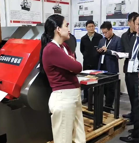 此次展會上,金鋒鋸業(yè)帶鋸床憑借卓越的性能和創(chuàng)新的設(shè)計,成為全場矚目的焦點(diǎn)。金鋒鋸業(yè)GS400雙立柱帶鋸床是一款全自動數(shù)控帶鋸床,適用于批量生產(chǎn)和連續(xù)切割。PLC控制系統(tǒng),可設(shè)置一組或幾組數(shù)據(jù)連續(xù)切割。智能彩色觸摸屏設(shè)置,操作簡單。運(yùn)行平穩(wěn)無噪音,切割出來的材料光滑零瑕疵。這款鋸床一經(jīng)展出,就吸引眾多外國客戶前來咨詢,其優(yōu)越的質(zhì)量、高效的性能引得周圍連連贊嘆,更有幾位外國客戶現(xiàn)場就簽訂了幾款鋸床訂單。