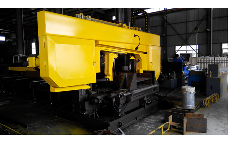 H型鋼是一種常見于建筑和工程用鋼材,因其橫截面形狀類似于字母“H”而得名。它由兩個平行的翼緣和中間的腹板組成,結構強度高,重量輕,廣泛應用于鋼結構建筑、橋梁、廠房、機械支撐等領域。金鋒鋸業(yè)為滿足建筑行業(yè)對H型鋼鋸切的需求,生產了旋轉角度帶鋸床。因為H型鋼的特殊結構在實際工程中需要斜切、角度切割或復雜截面加工,旋轉角度帶鋸床可靈活矯正角度,適應復雜結構切割,是H型鋼鋸切的理想設備。