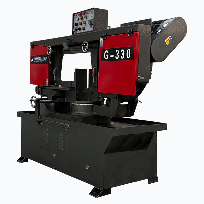 剪切式鋸床在鋸條快速切割時(shí),會(huì)以“剪刀式”的剪切動(dòng)作切割工件,前后旋轉(zhuǎn)多角度切割方管、圓管、H型鋼、工字鋼等工件。金鋒鋸業(yè)小型剪切式鋸床型號(hào)有G4025、GZ4018、G330等帶鋸床。在切割工件時(shí),切口平整光滑,鋸床切割斷面質(zhì)量高、毛刺少,省去二次加工的工序;低摩擦、低熱量延長鋸條使用壽命,節(jié)省了公司成本。