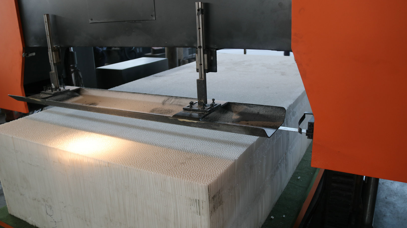 3.鋸架可上下移動,調整切割位置,鋸架移動由100雙圓柱導向,液壓油缸驅動,導向精度高、性能穩(wěn)定可靠